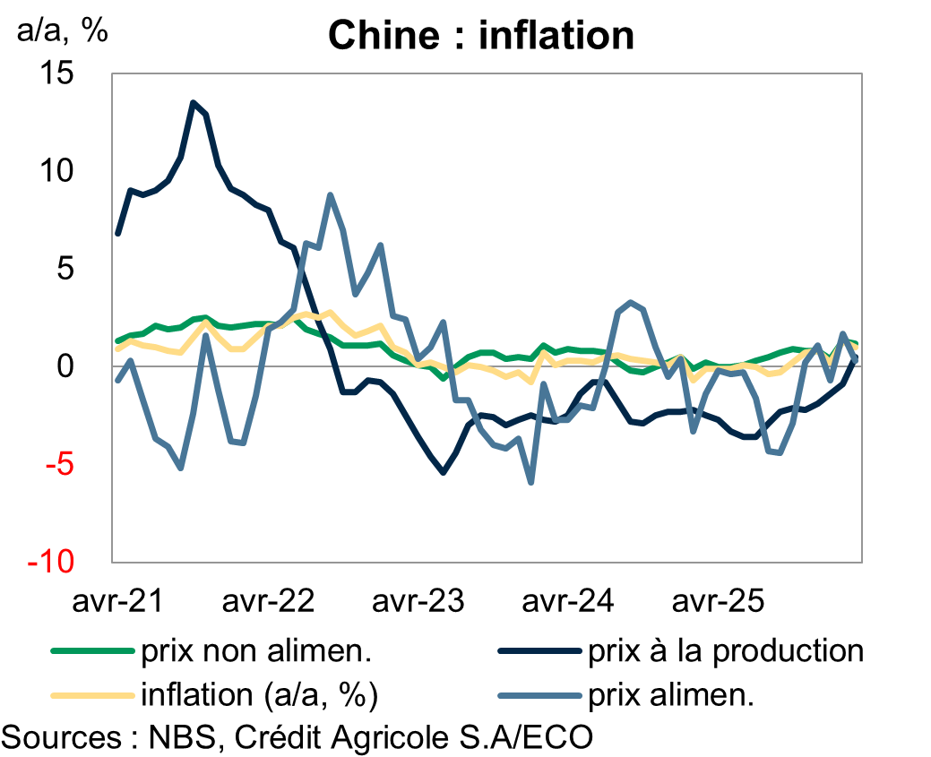 À court terme, l’impact de la guerre se voit déjà dans les prix à la production, qui sont repassés en territoire positif (+0,5% en glissement annuel) pour la première fois depuis septembre 2022. Il aura donc fallu un choc de l’ampleur de celui de la fermeture du détroit d’Ormuz pour que la Chine sorte de la déflation. Sur le papier, il s’agit plutôt d’une bonne nouvelle, tant la déflation est nocive pour les économies et les fait plonger dans des cercles vicieux conduisant souvent à une baisse de l’investissement, des destructions d’emplois et de capacités de production.