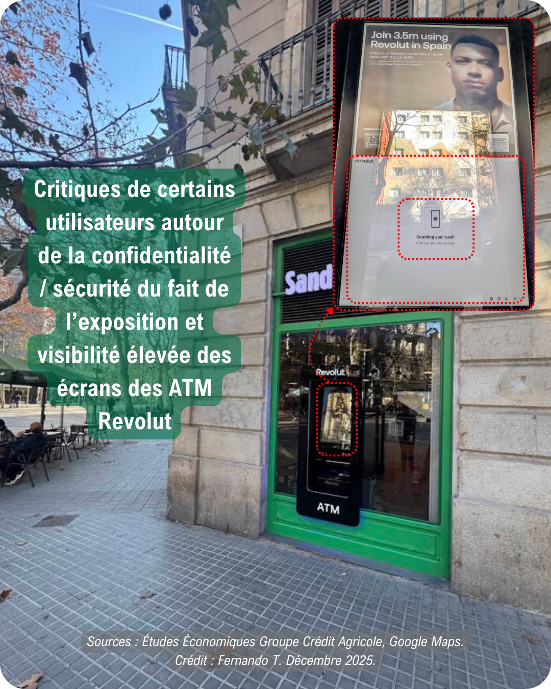 Pour une génération sensible à l’expérience visuelle, retirer de l’argent sur une machine Revolut peut paraître valorisant. Mais si Revolut veut la visibilité dans l’espace public, celle-ci peut aussi produire des externalités négatives.