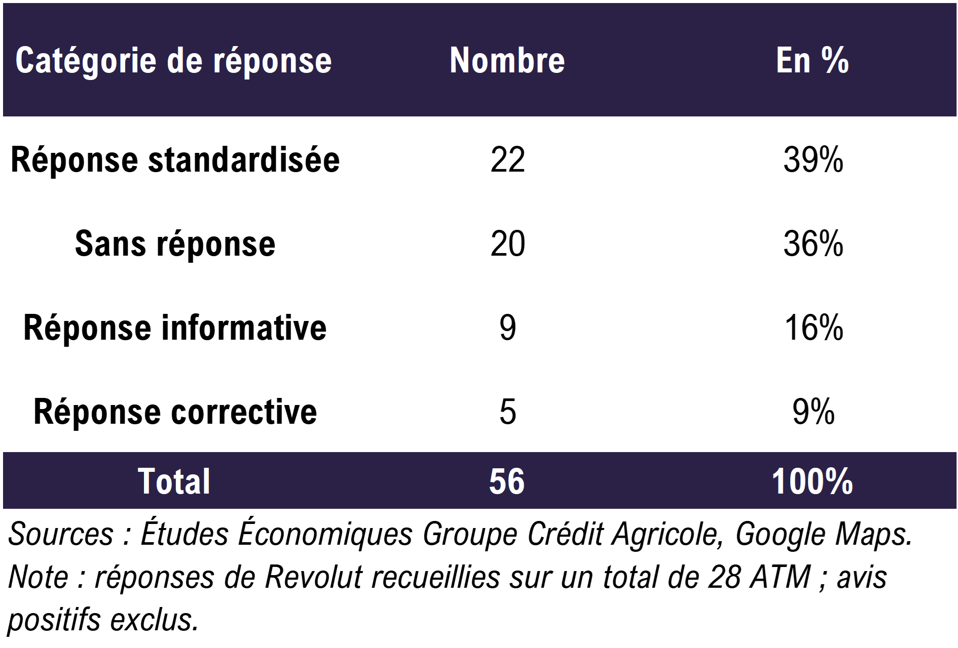 Les avis utilisateurs associés à ces implantations ont tous été examinés sur Google de manière systématique. Les verbatims ont été analysés selon une grille homogène : nature du signal, niveau de gravité perçue, récurrence des incidents et typologie des réponses publiques apportées par la néobanque.